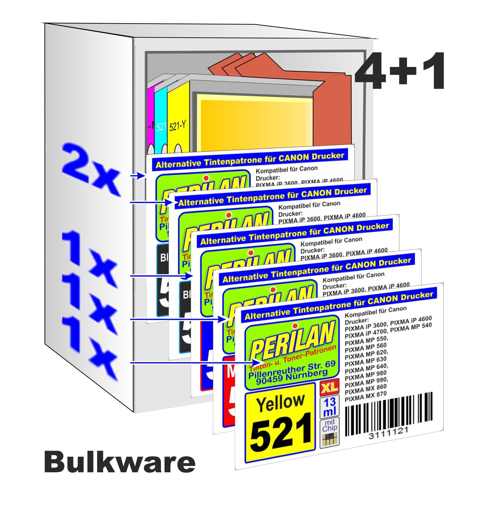 PGI-520 - CLI-521 Multi, 5 alternative XL Tintenpatronen 2xBK/1xC/1xM/1xY, 2x Schwarz je 23 ml, Color je 13 ml. mit Chip, ohne Photo Schwarz, EAN: 3111123