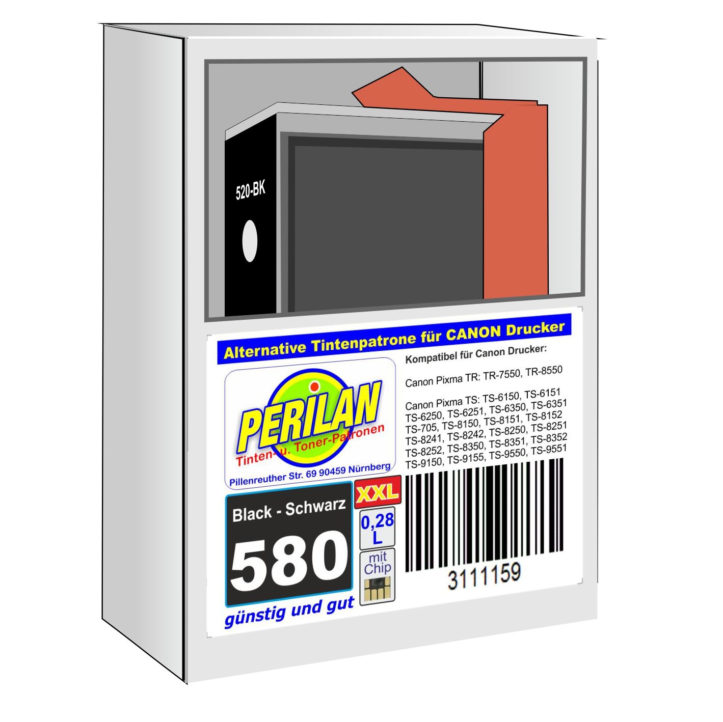 PGI-580bk, XXL Tintenpatrone BK, alternativ, Schwarz, 28 mit Chip, EAN: 3111159