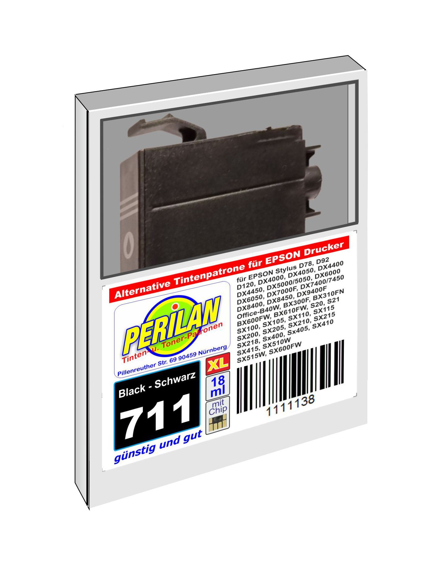 T0711, Tintenpatrone, alternativ, Schwarz 18 ml, mit Chip, EAN: 1111138