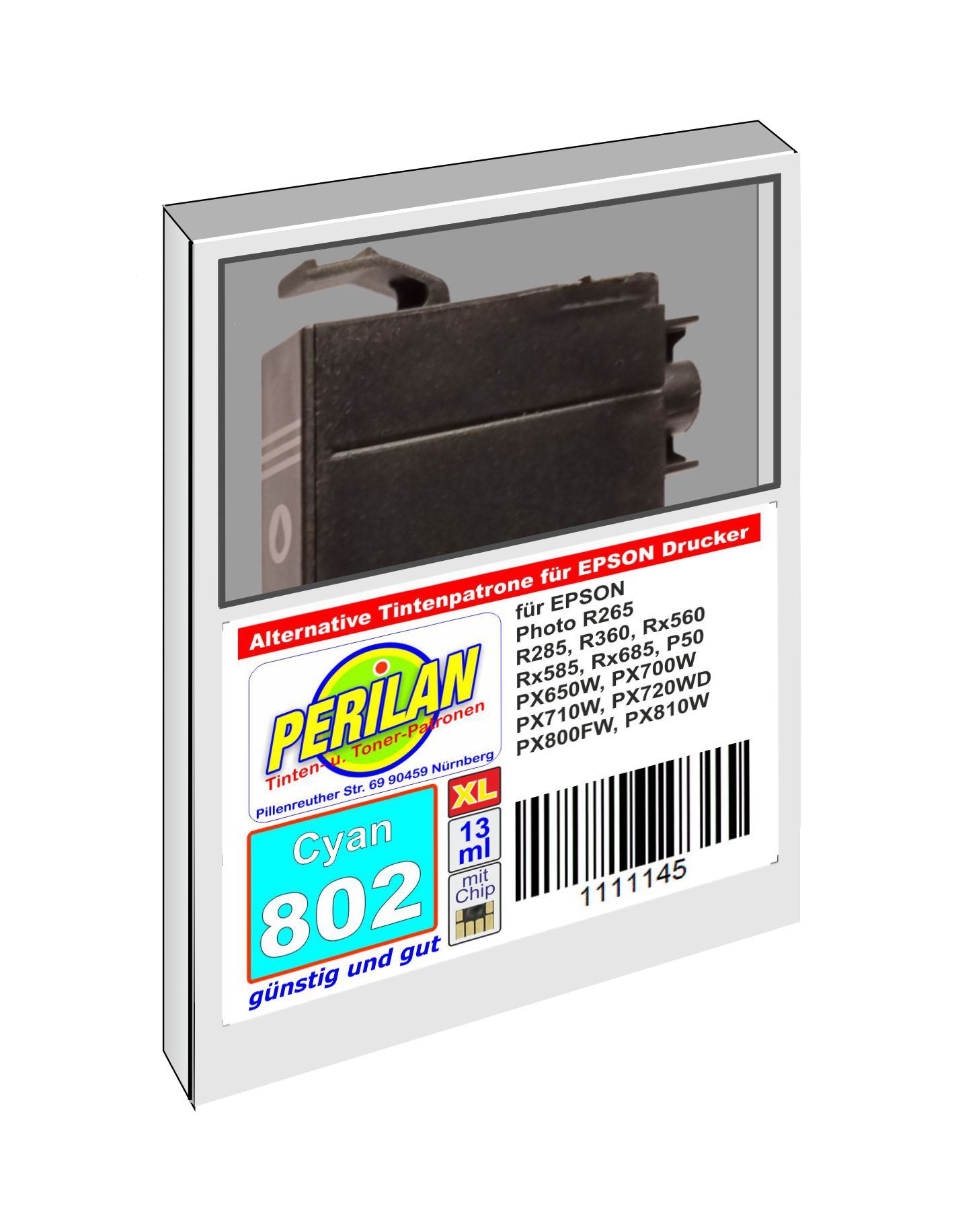T0802, Tintenpatrone, alternativ, Color (Cyan) 13,5 ml, mit Chip, EAN: 1111145