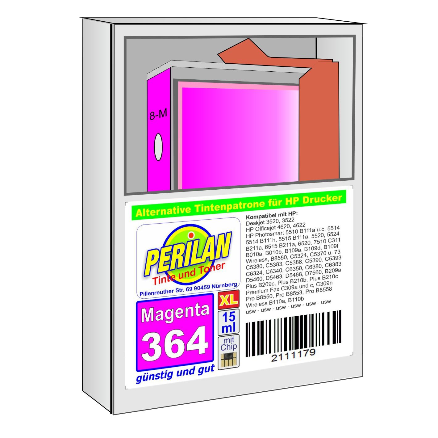 HP-364m XL alternativ Tintenpatrone, Magenta, 15 ml, mit Chip, EAN: 2111179