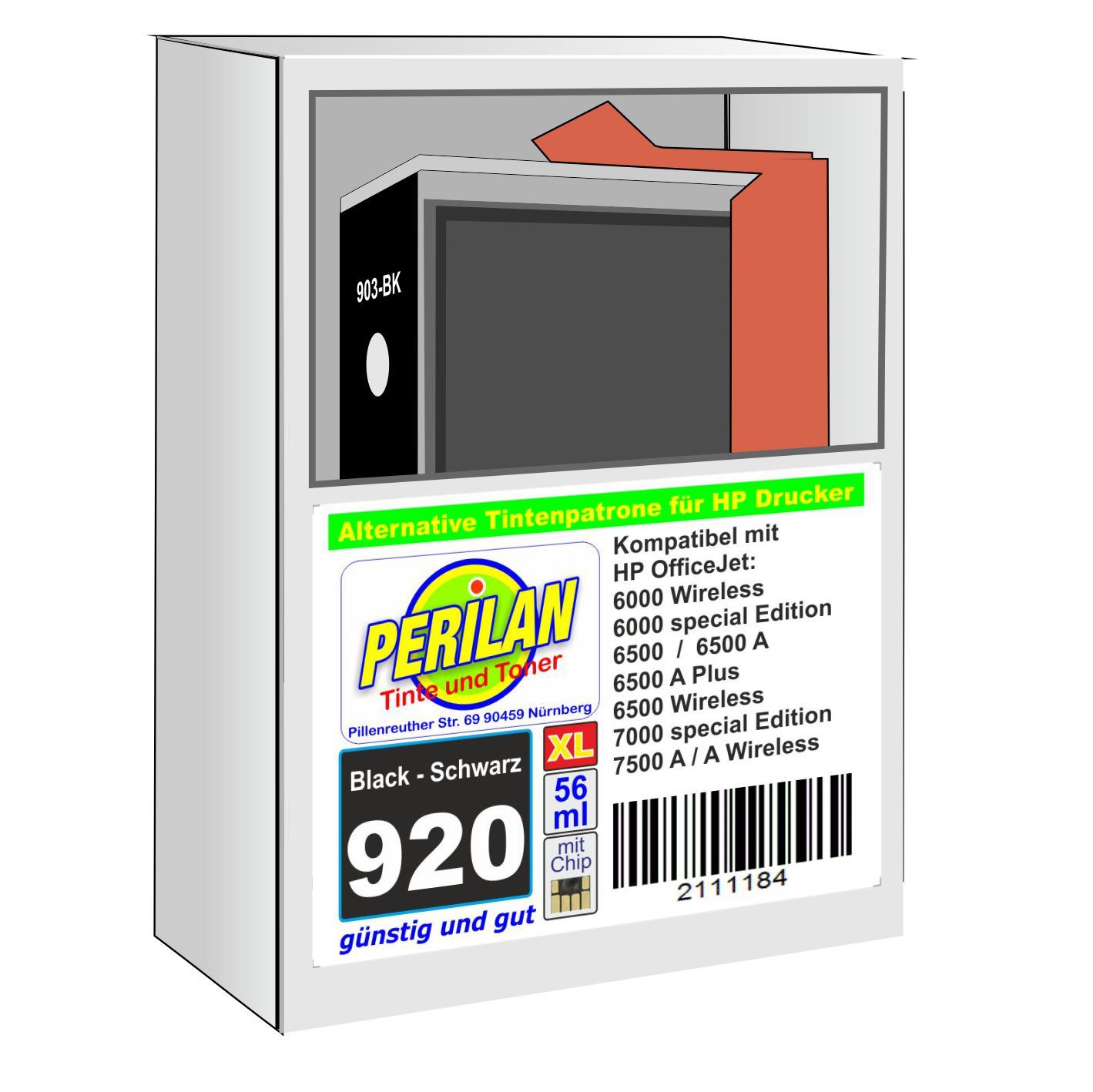 HP 920bk XL, Tintenpatrone, BK, alternativ, Schwarz, 50 ml, mit Chip, EAN: 2111184