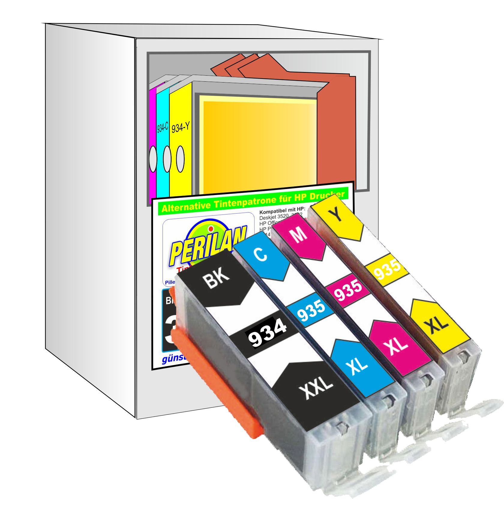 HP 934/935 XL, 4 "Perilan" XL Tintenpatronen,, alternativ, 1x Schwarz, 3x Color, EAN: 2111200